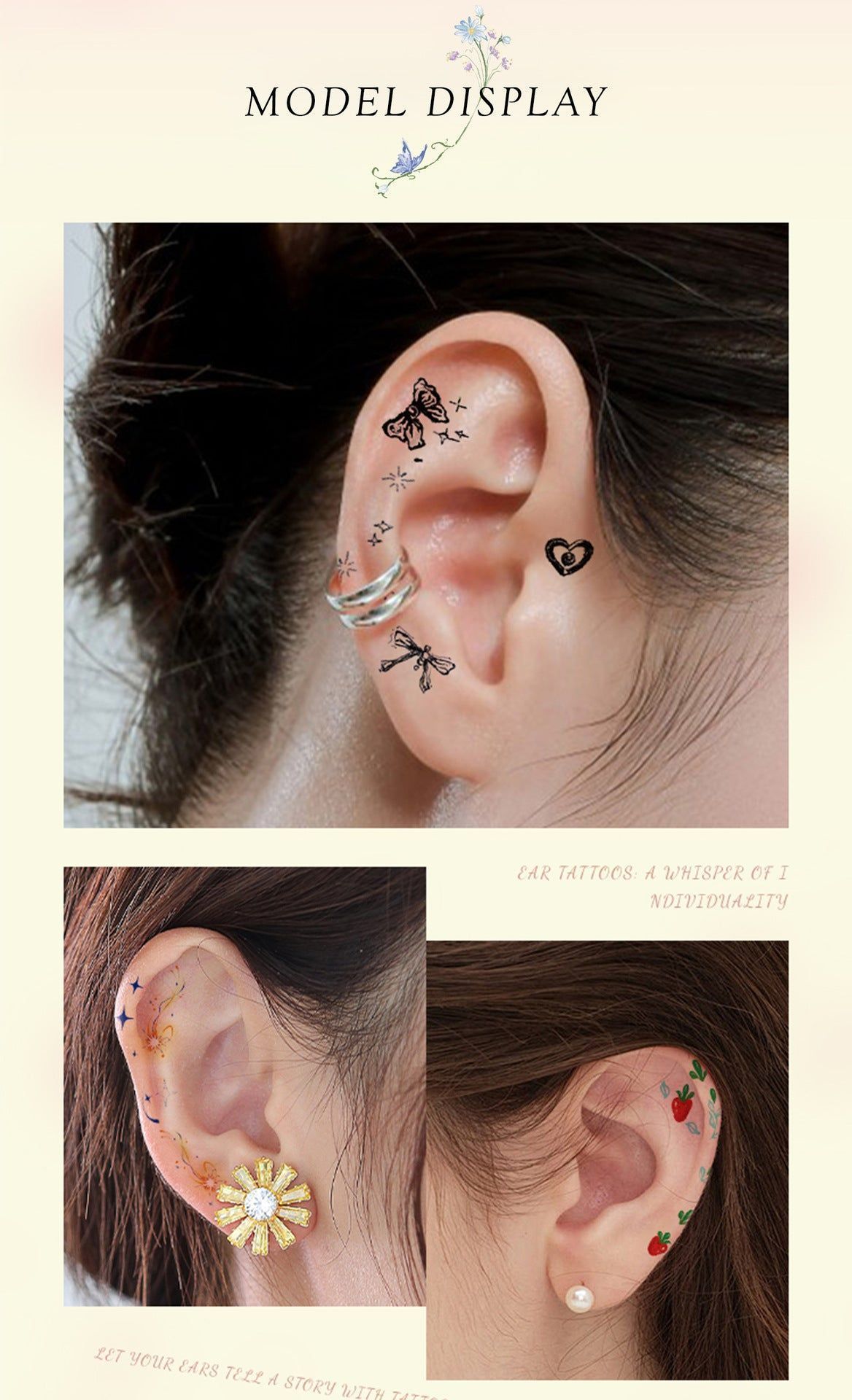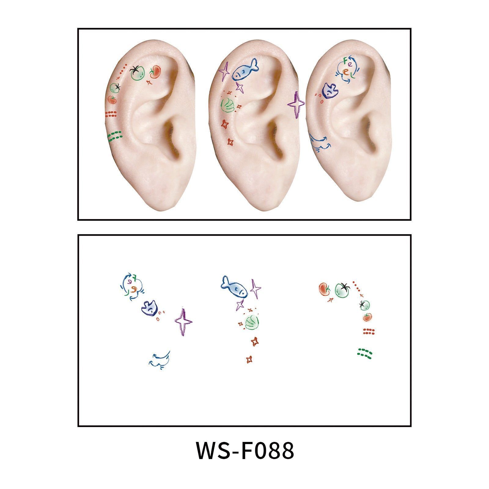New European and American-style colorful dopamine ear stickers, trendy Hyuna-style summer mini ear tattoos Fashion
