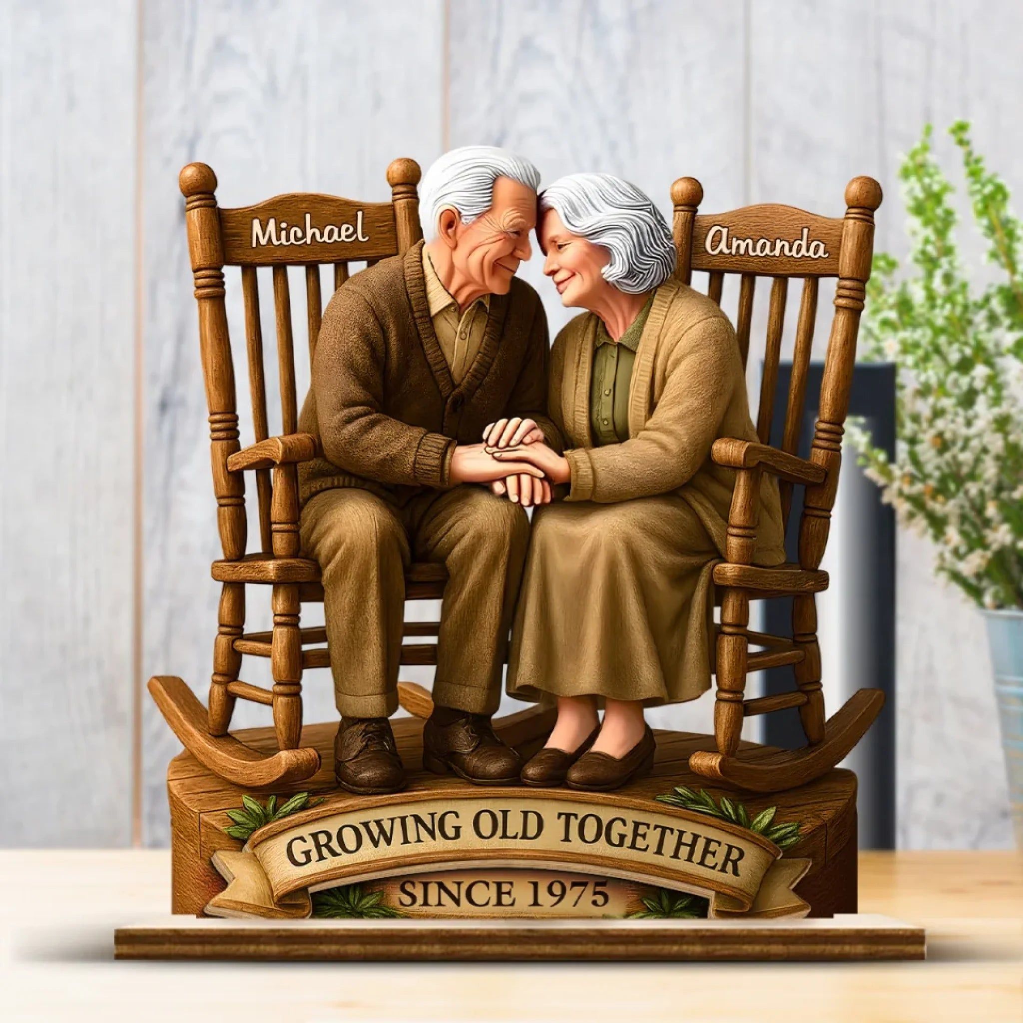 Growing old together personalized wooden couple board with stand