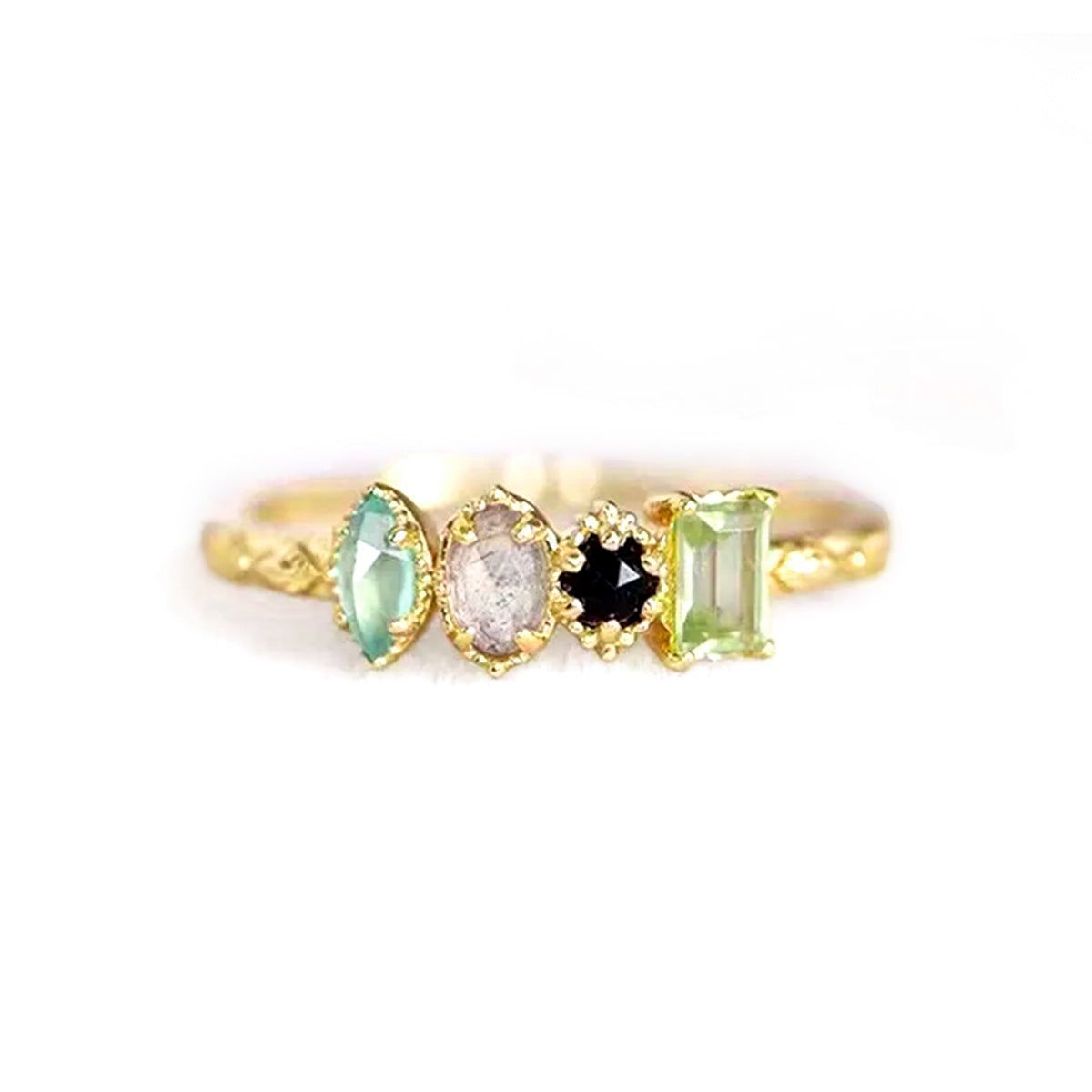 • 1 × أحجار متعددة شخصية خاتم عائلة الجدة أمي خاتم Milgrain خمر